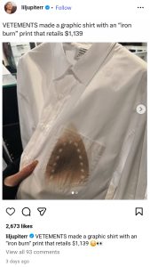 بالصورة: قميص “علامة المكواة” بـ1139 دولاراً يشعل الجدل حول الموضة الفاخرة