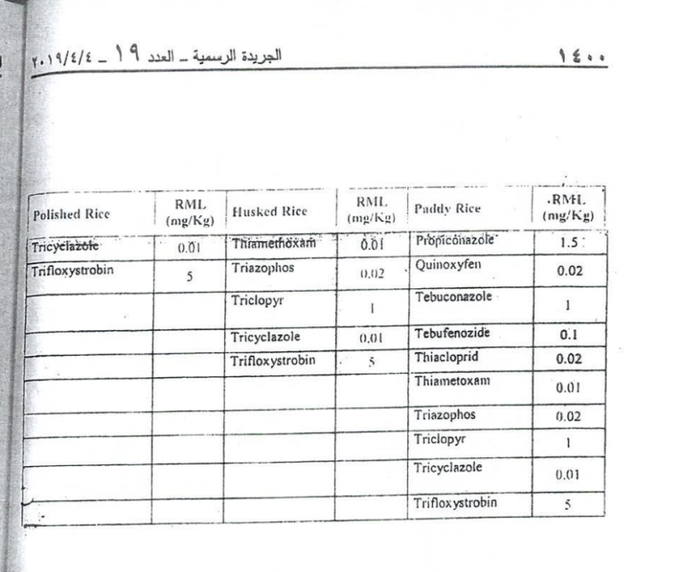 4- كما أن الصين وهي أكبر منتج ومستهلك للأرز في العالم تحدّد النسبة القصوى بـ2.00ppm (أي 200 مرة النسبة المسموحة في لبنان).