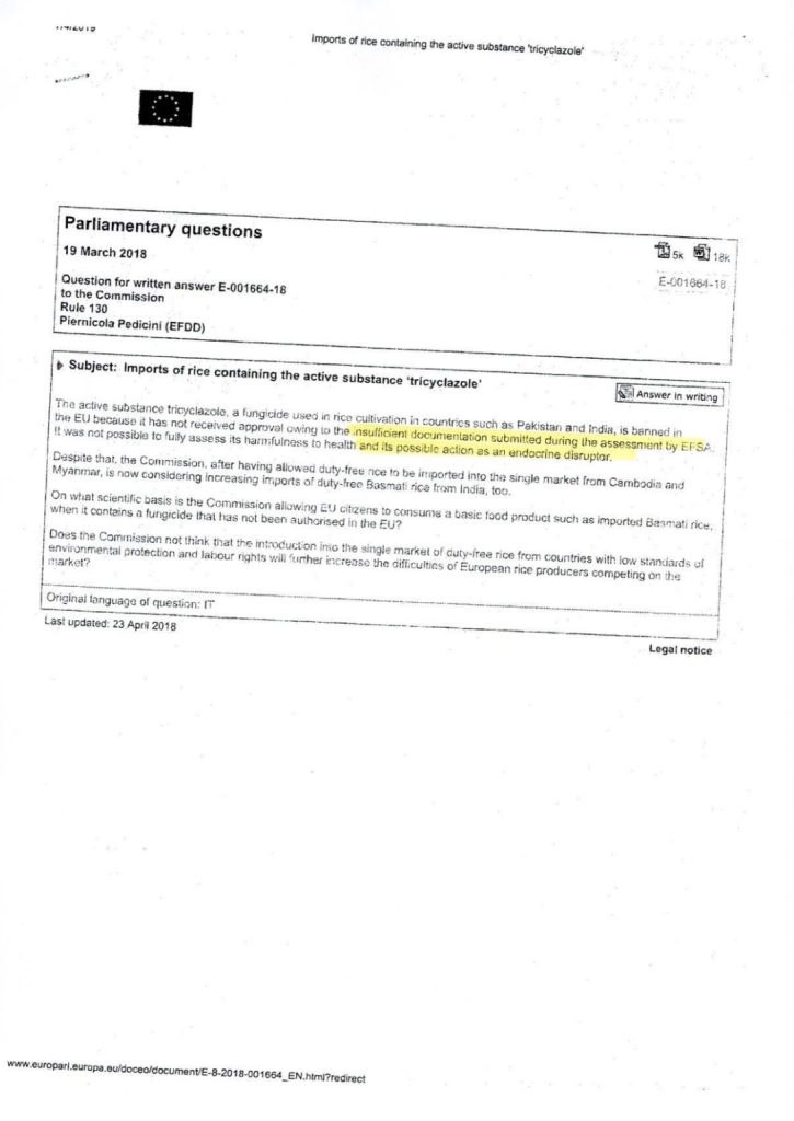6- EFSA-Parliamentary Question 19/3/2018