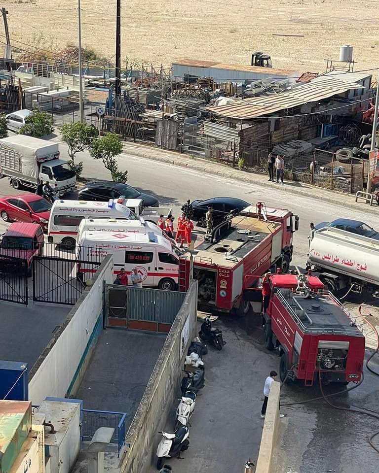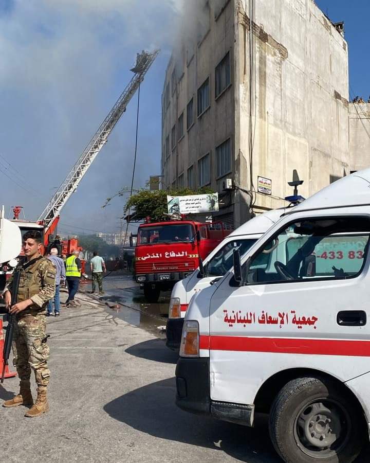 هذا وتعمل فرق من جهاز الطوارئ والاغاثة على اسعاف عدد من الاصابات التي تعرضت للاختناق بسبب الدخان الكثيف، وسط انتشار لوحدات الجيش في المكان لمنع المواطنين من الاقتراب.
