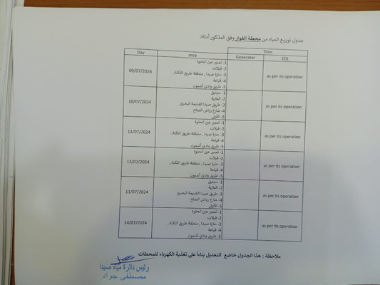 “مياه الجنوب”: اعتماد جدول توزيع مؤقت