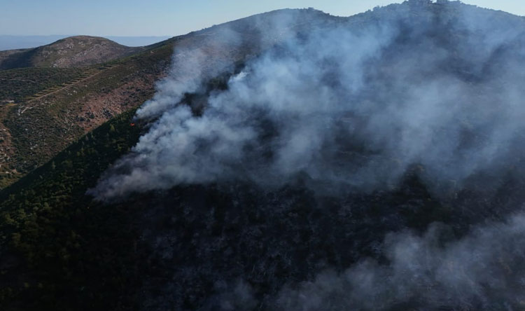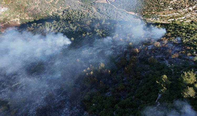 وبدأت طوافة عسكرية، اعتباراً من الساعة السابعة صباح اليوم، بإخماد النيران التي لا تزال نشطة بسبب ارتفاع درجات الحرارة والرياح القوية، حيث بلغت مساحة الأراضي الحرجيّة المحروقة حتى الساعة أكثر من 25 هكتاراً، من ضمنها عدد كبير من بساتين الزيتون وكروم العنب والتين.