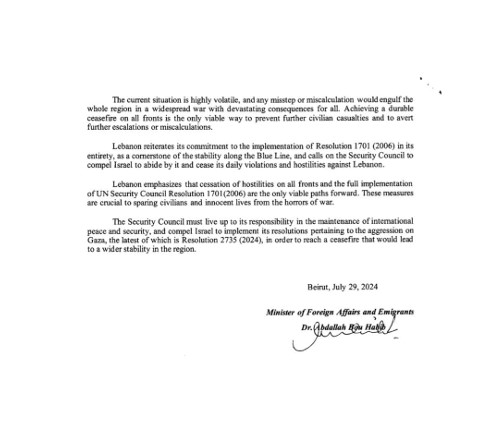 وجه وزير الخارجية عبد الله بو حبيب رسالة إلى مجلس الأمن بشأن حادثة مجدل شمس.