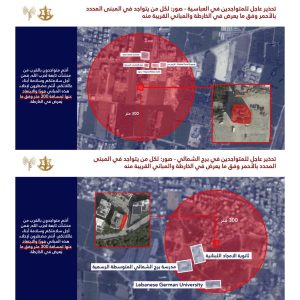 وحثّ سكان المبنييْن المحدديْن بالأحمر في الخريطتيْن
