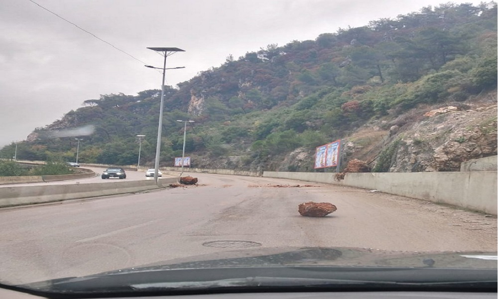 سقوط صخور على أوتوستراد المتن السريع