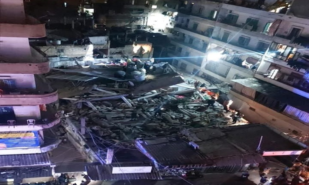 بالصورة: إنقاذ سيدة من تحت أنقاض مبنى القبة المنهار!