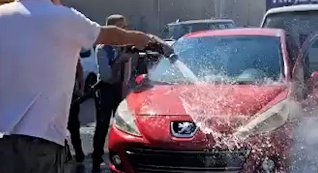 بالفيديو: النار تشتعل في سيارة… وسائق صهريج يُنقذ الموقف