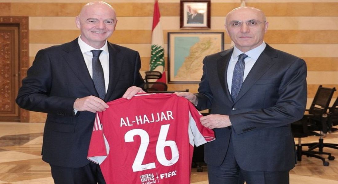 الحجار يستقبل رئيس الفيفا انفانتينو ويبادل الهدايا الرمزية