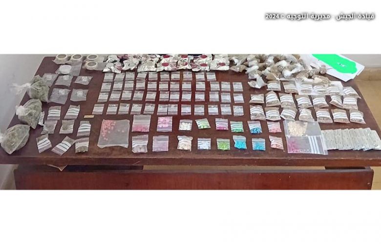 ضمن إطار التدابير الأمنية التي تقوم بها المؤسسة العسكرية في مختلف المناطق، أوقفت دورية من مديرية المخابرات الفلسطيني (ق.ظ.) في منطقة بدارو – بيروت لإقدامه على الإتجار بالمخدرات، وضبطت في حوزته كمية كبيرة منها، بالإضافة إلى دراجة نارية غير قانونية. وأوقفت دورية أخرى من المديرية المواطن (ع.ز.) في سد البوشرية – جبل لبنان لإقدامه على تعاطي المخدرات، والقيام بعمليات سلب وسرقة بقوة السلاح وإطلاق النار والتجول من دون أوراق ثبوتية وقانونية، وضبطت في حوزته كمية من المخدرات.