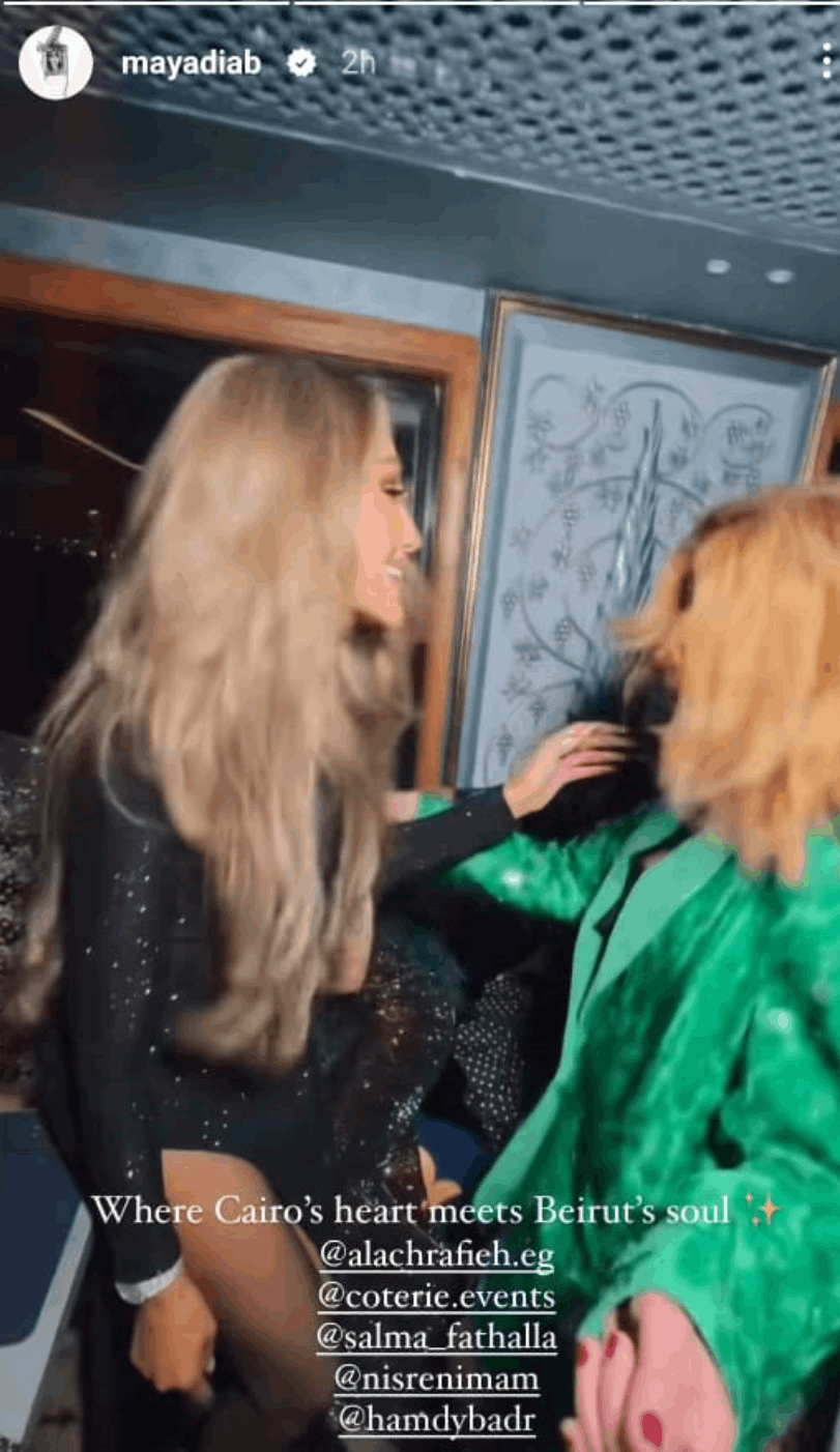 بعد ذلك، شاركت مايا في إحدى المناسبات في القاهرة، حيث لفتت الأنظار بإطلالتها المميزة، حيث ارتدت فستاناً طويلاً أسود اللون يتميز بفتحة تصل لأعلى الساق.